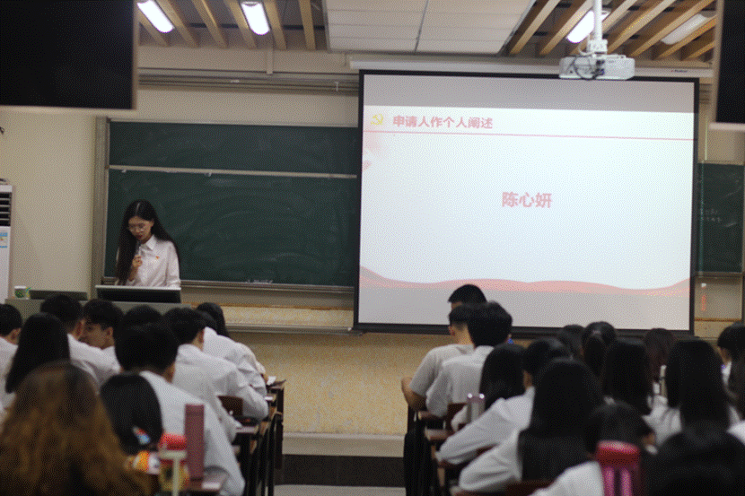 会议由梁其豪同志主持,陈心妍等22位发展对象依次上台进行个人阐述,介绍自己对党的认识、入党动机、个人履历、家庭和主要社会关系情况及需要向党组织说明的问题。