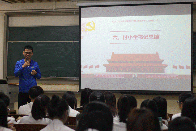 11月19日,经济与管理学院国际商管系学生党支部于莞城校区3309教室开展了支部党员大会,对预备党员转正问题进行讨论。支部书记付小全老师、委员熊涛老师、刘欣颖老师及全体学生党员出席本次会议。