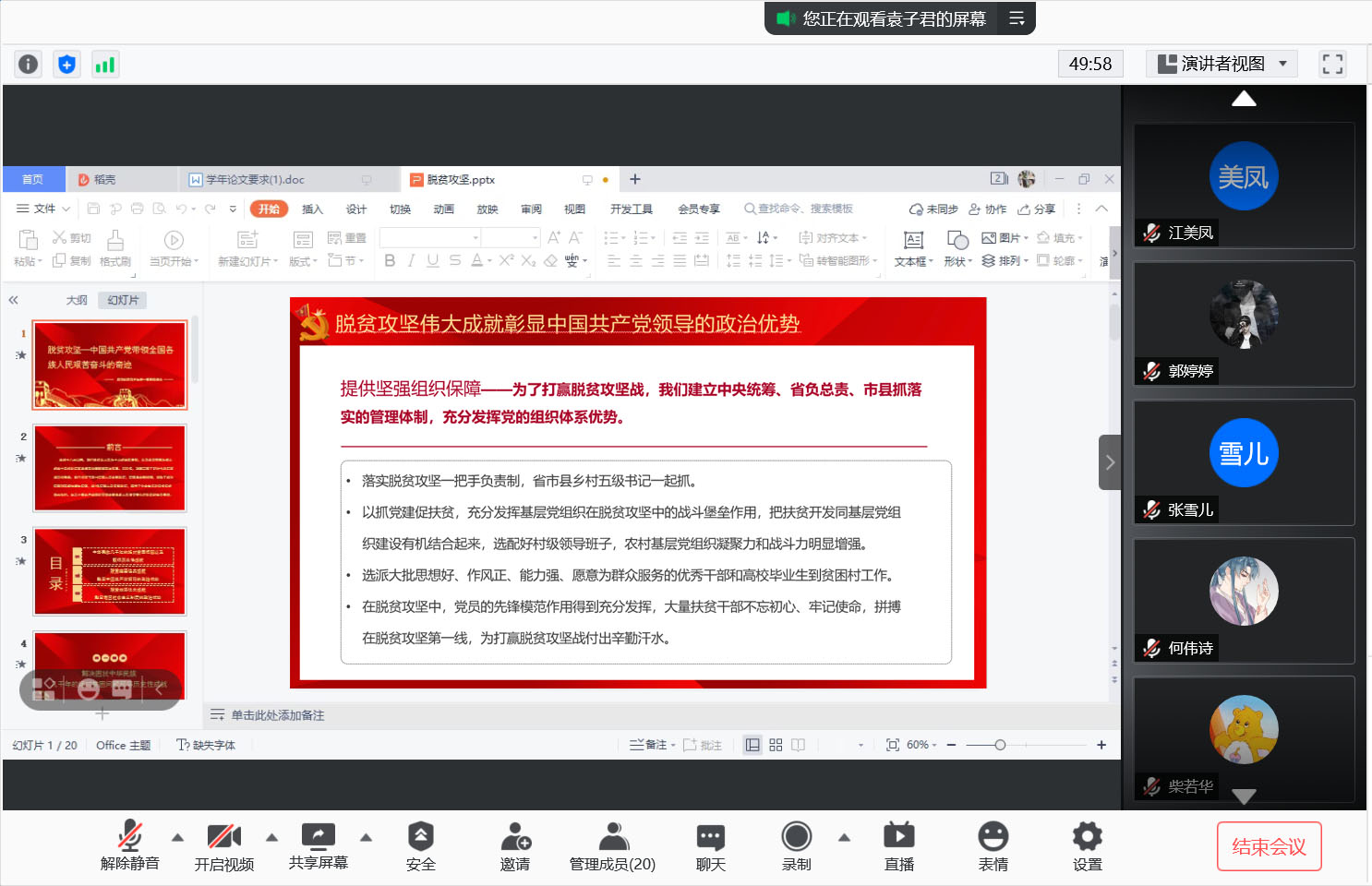 6月17日,经管与管理学院应用经济系学生第一党支部开展“汲取精神力量助力脱贫攻坚”线上主题党日活动,学习习近平总书记关于脱贫攻坚的重要论述精神。会议由支部书记付小全同志主持,全体党员出席。