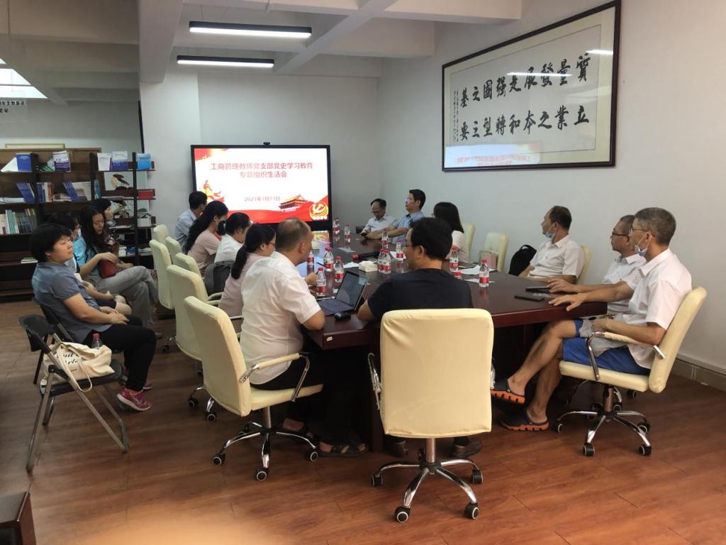 2021年7月13日,经济与管理学院工商管理教师党支部在莞城校区4420召开了“学党史、悟思想、办实事、开新局”党史学习教育专题组织生活会,支部全体党员参加了会议。