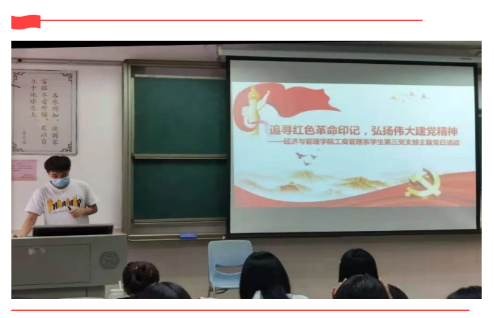 2021年9月2日,经济与管理学院工商管理系学生第三支部在3406课室开展“追寻红色革命印记,弘扬伟大建党精神”主题党日。本次党日活动由蒲伟涛同志主持。