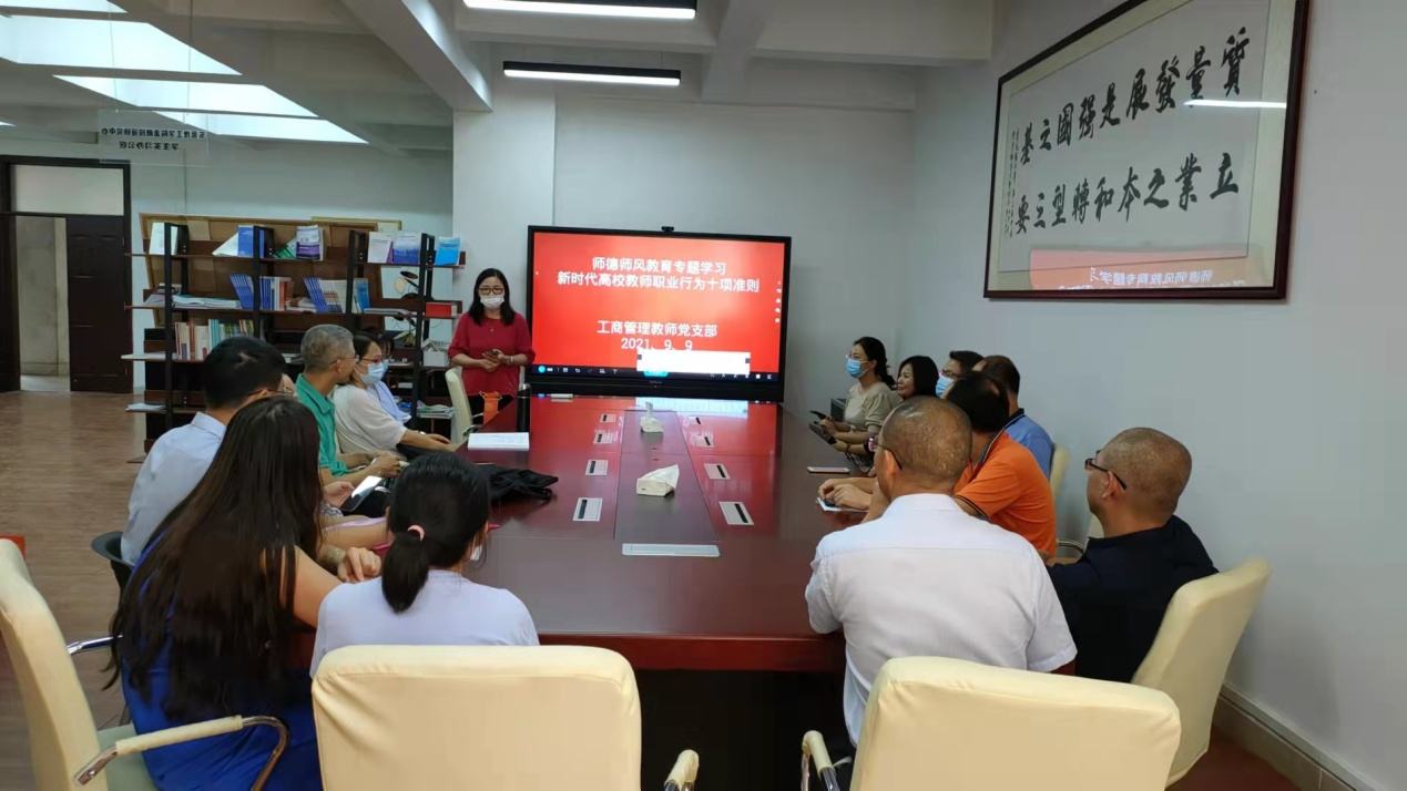 为深入学习习近平新时代中国特色社会主义思想,贯彻落实习近平总书记在全国教育大会上的重要讲话精神,落实立德树人根本任务,进一步推进学校师德建设主题教育月活动的深入开展,9月9日,在第37个教师节来临之际,经济与管理学院工商管理教师党支部于莞城校区4420会议室开展了师德建设主题教育研讨学习。
