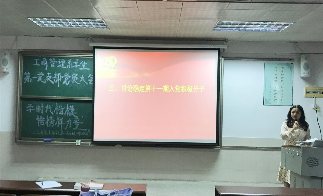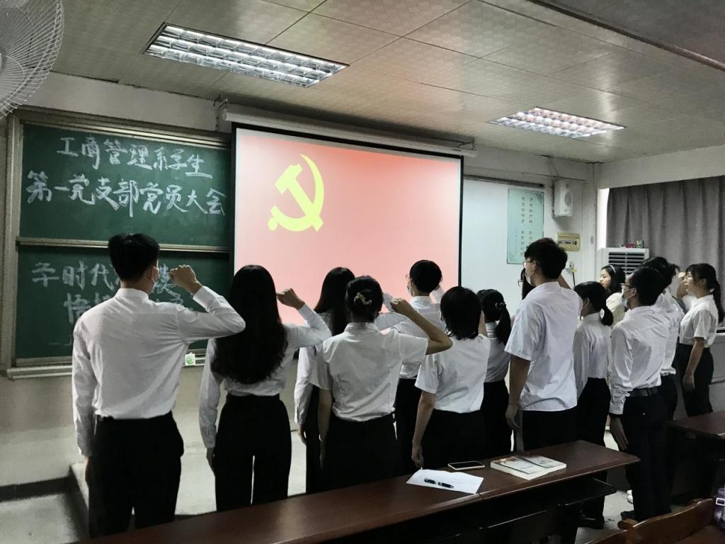 2021年10月18日下午,经济与管理学院工商管理系学生第一党支部于莞城校区3401课室顺利召开党员大会,主要内容是组织2021上半年接收的预备党员进行入党宣誓及讨论通过第十一期入党积极分子名单。