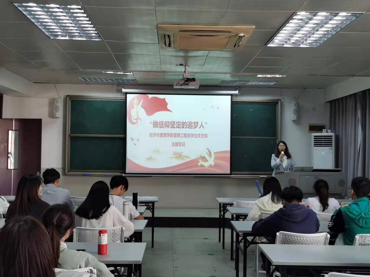 2021年11月18日,经济与管理学院管理工程系学生党支部顺利开展了“做信仰坚定的追梦人,向黄大年同志学习”主题党日。会议由支部书记杨梅青主持,全体学生党员参与此次主题党日。