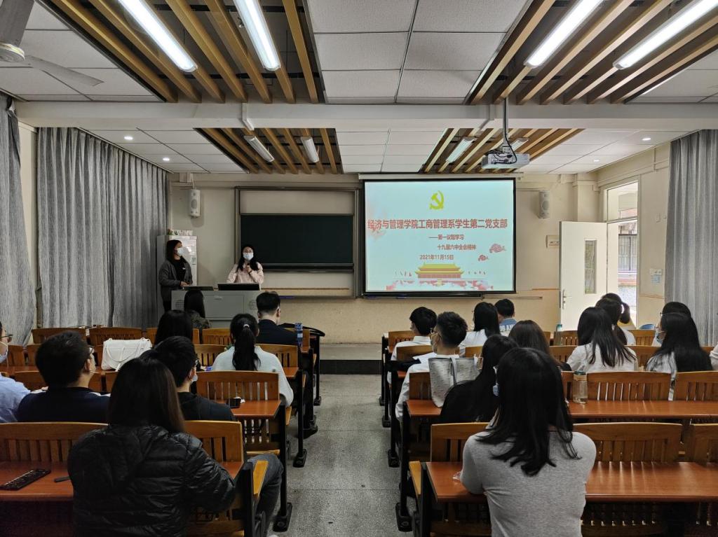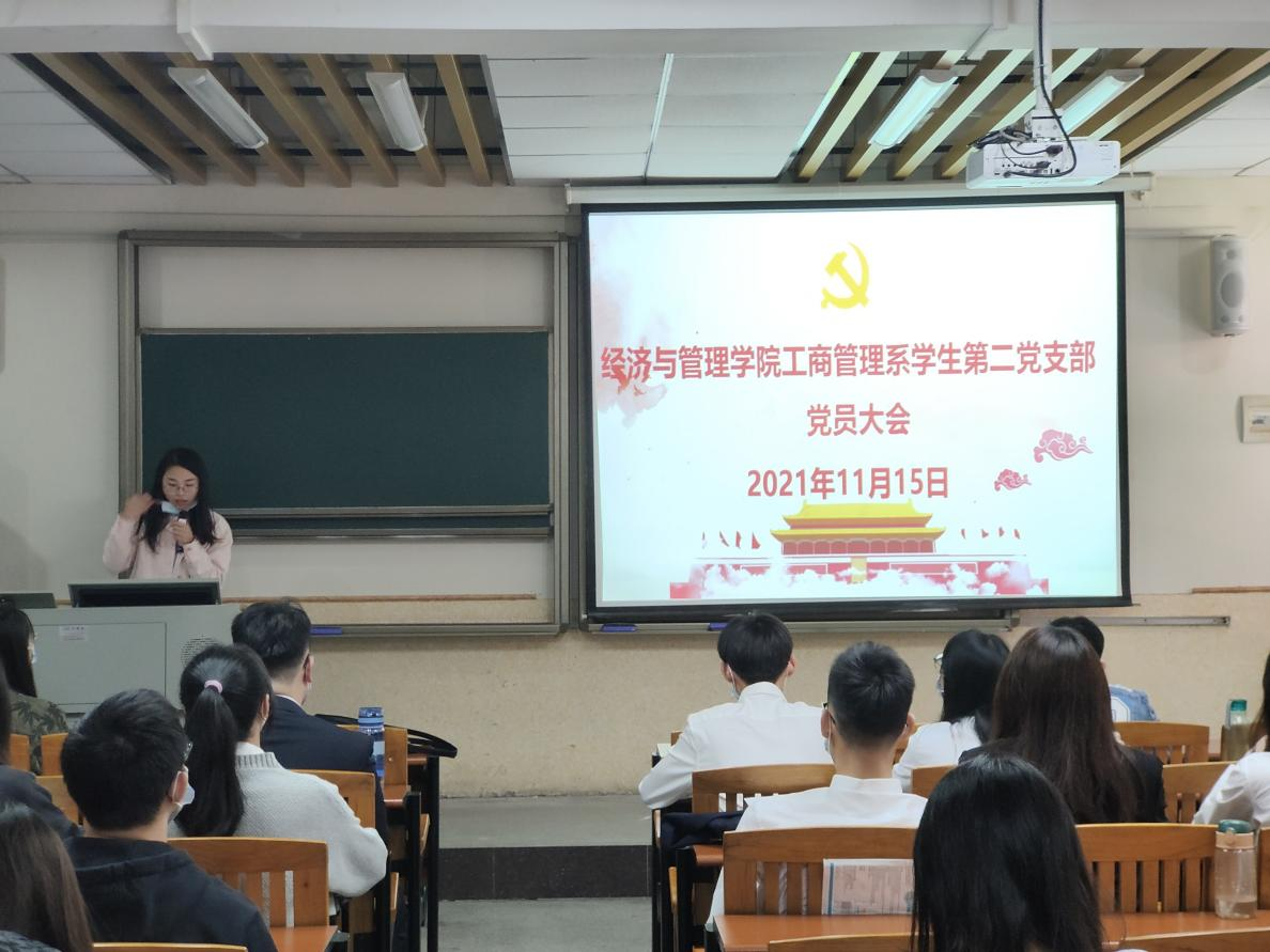 11月15日下午,经济与管理学院工商管理系学生第二党支部于莞城校区5207课室召开工商管理系学生第二党支部大会,讨论预备党员的接收问题。支部书记彭枚芳、组织委员熊涛和全体学生党员出席了现场。
