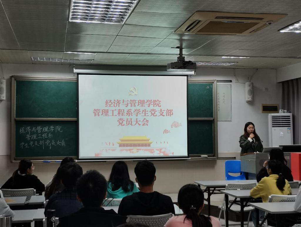 2021年11月15日,经济与管理学院管理工程系学生党支部于莞城校区3402教室召开了党员大会。会议由支部书记杨梅青主持,支部全体学生党员出席了本次会议。