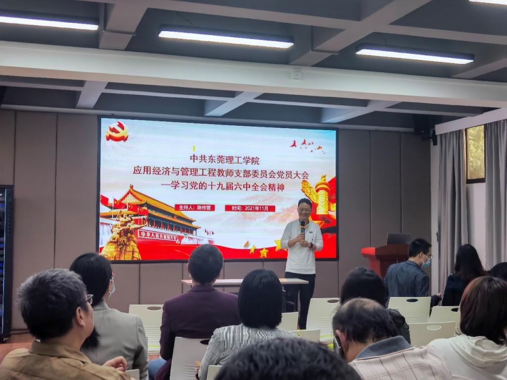 2021年11月18日,经济与管理学院应用经济与管理工程教师党支部于4520召开党员大会学习贯彻党的十九届六中全会精神。会议由支部书记陈传营同志主持。