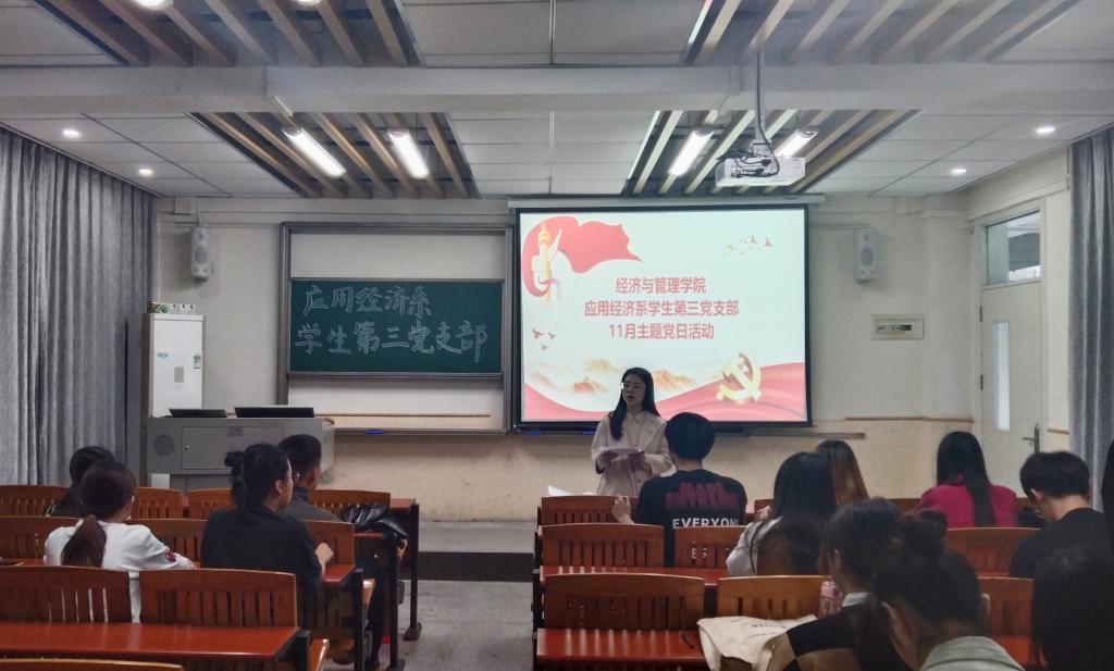 2021年11月18日,经济与管理学院应用经济系学生第三党支部于莞城校区5207课室顺利举行“赓续红色血脉,汇聚奋进力量”主题党日。活动由支部书记叶琦玮同志主持,全体学生党员出席了本次活动。