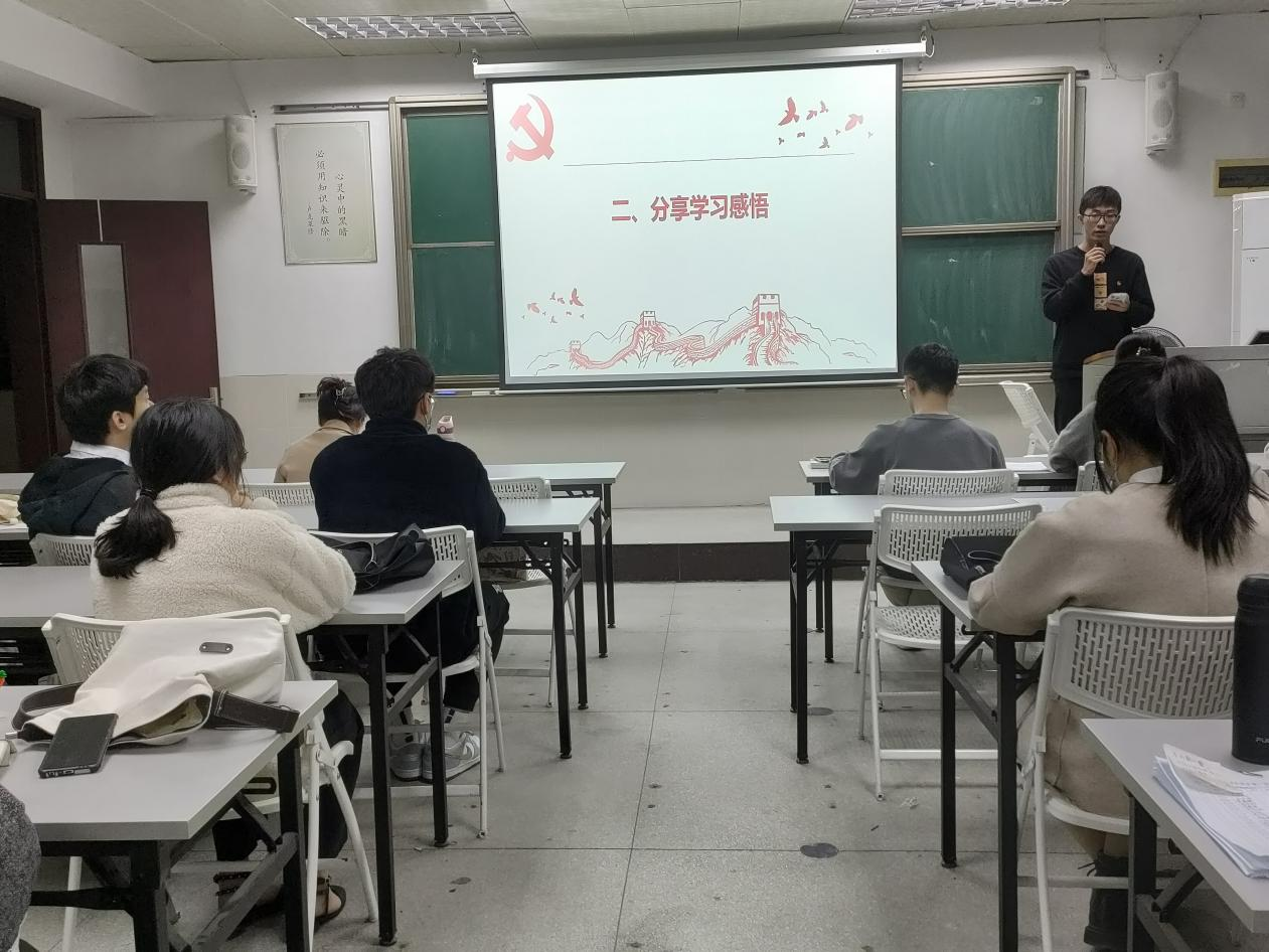 为持续强化党史学习教育,始终保持不骄不躁,艰苦奋斗,赓续红色血脉,12月2日晚,经济与管理学院工商管理系学生第一党支部开展党的十九届六中全会精神学习分享会。经济与管理学院党委副书记黄湘,工商管理系学生第一党支部书记刘文渊及支部全体党员参与了此次学习分享会。