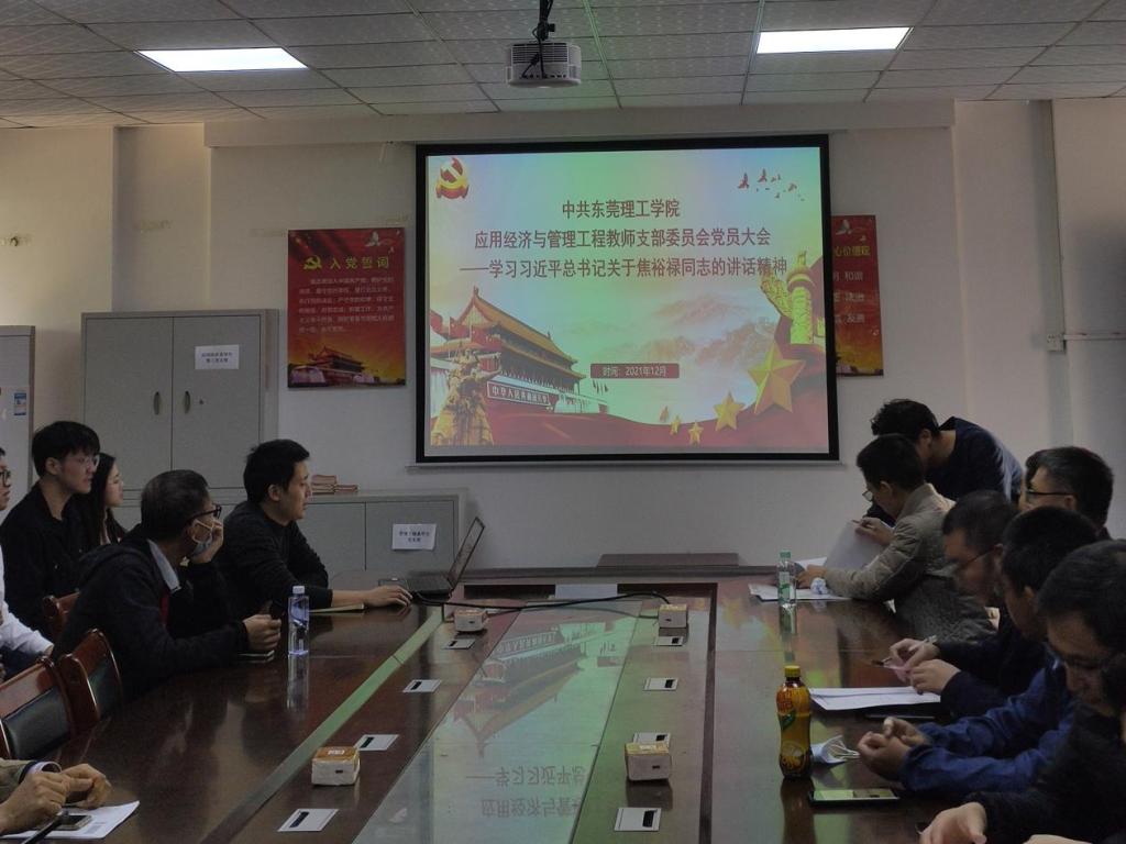2021年12月9日,经济与管理学院应用经济与管理工程教师党支部于3307党员活动室学习弘扬焦裕禄精神、学习贯彻习近平总书记在第三次“一带一路”建设座谈会上的重要讲话精神。