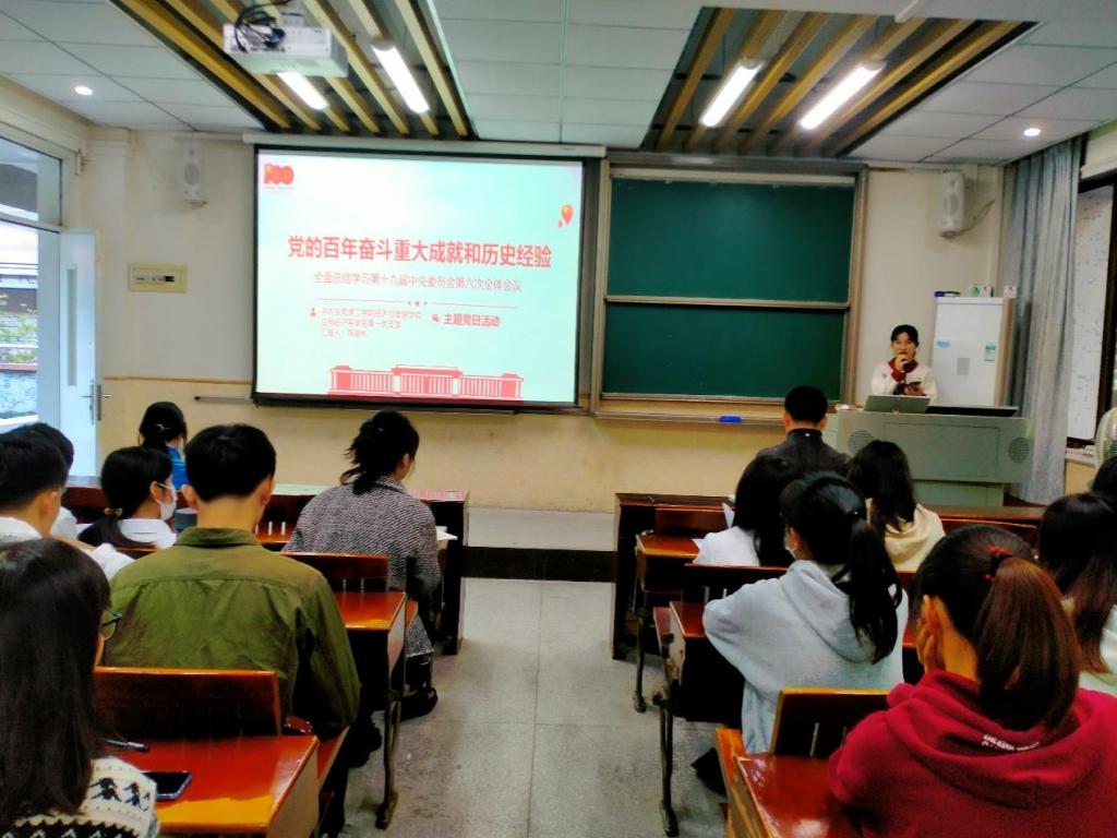 11月15日,经济与管理学院应用经济系学生第一党支部于莞城校区3308课室召开专题学习会,学习贯彻习近平总书记在党的十九届六中全会上的重要讲话和全会决议精神,支部全体党员出席现场,支部书记付小全主持会议。