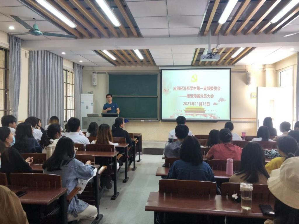 11月15日,经济与管理学院应用经济系学生第一党支部在莞城校区3308教室召开了支部大会讨论接收预备党员,支部书记付小全老师及全体学生党员出席本次会议。