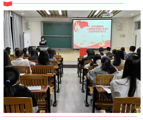 2021年11月8日,经济与管理学院工商管理系学生第三党支部于莞城校区5207教室召开支部党员大会。会议由支部书记黄雅莉同志主持,全体学生党员出席了现场。