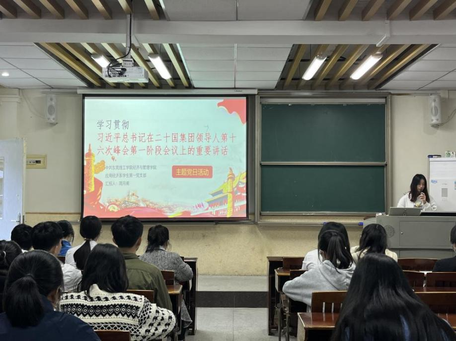 12月16日,经管与管理学院应用经济系学生第一党支部在莞城5205学习贯彻了习近平在二十国集团领导人第十六次峰会第一阶段会议上的重要讲话精神。会议由支部书记付小全同志主持,全体党员出席。