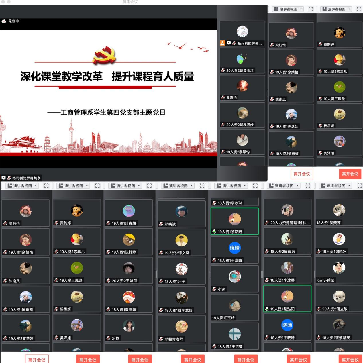 3月25日,经济与管理学院工商管理系学生第四党支部顺利开展了“深化课堂教学改革提升课程育人质量”线上主题党日,支部书记邓毅青和全体学生党员参与了活动。