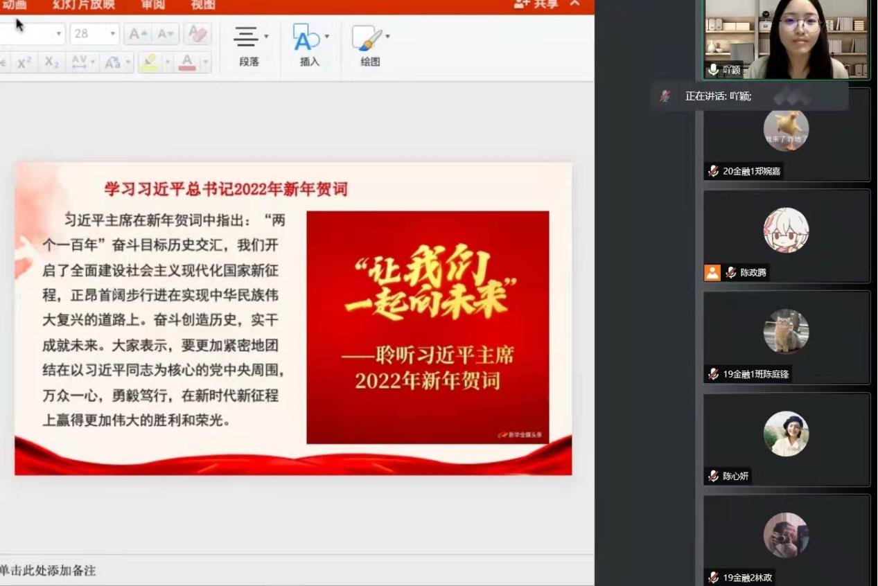 2022年1月25日,经济与管理学院应用经济系学生第二党支部深入学习了习近平总书记2022年新年贺词,会议采用线上的方式进行,由支部书记刘欣颖主持,支部全体学生党员参与了学习。