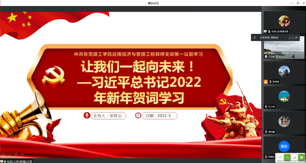2022年3月17日,经济与管理学院应用经济与管理工程教师党支部召开线上党员会议,学习习近平总书记2022年新年贺词。