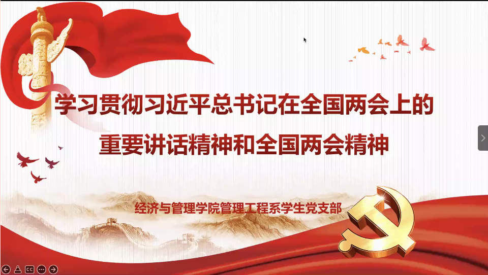 2022年4月17日,经济与管理学院管理工程系学生党支部顺利召开线上会议,学习习近平总书记在全国两会上的重要讲话精神和全国两会精神。支部书记杨梅青和全体学生党员参与了此次学习。