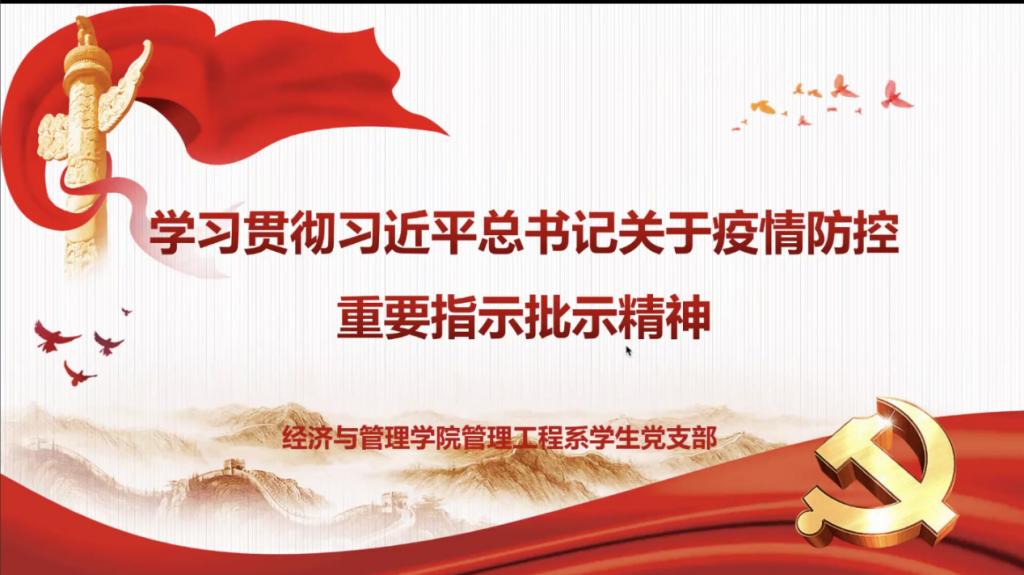 2022年4月17日,经济与管理学院管理工程系学生党支部召开了线上会议,学习习近平总书记关于疫情防控重要指示批示精神。支部书记杨梅青和全体学生党员参与了此次学习。