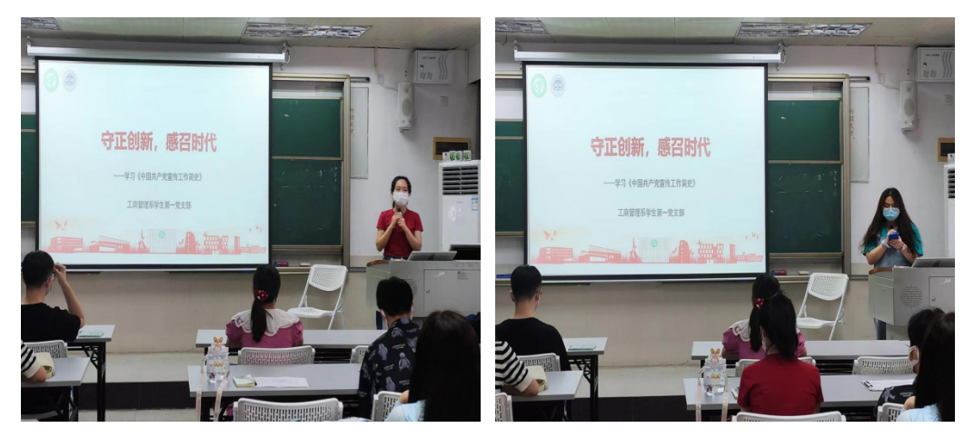 2022年5月29日下午,经济与管理学院工商管理系学生第一党支部于莞城校区3402课室,以“守正创新,感召时代”为主题,组织学习《中国共产党宣传工作简史》。经济与管理学院党委副书记黄湘,工商管理系学生第一党支部书记刘文渊及支部全体党员参与了本次学习。
