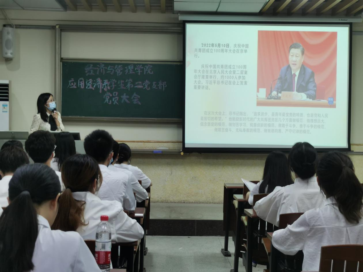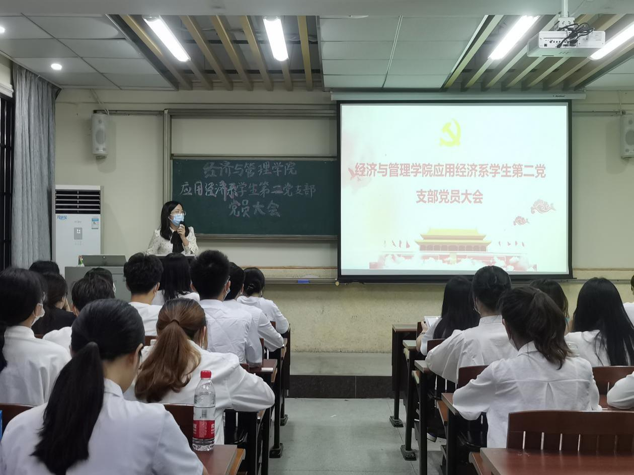 2022年6月24日晚上,经济与管理学院应用经济系学生第二党支部于莞城校区3308课室顺利召开党员大会,讨论接收预备党员的相关事宜。应用经济系学生第二党支部书记刘欣颖和全体学生党员参加了此次会议。