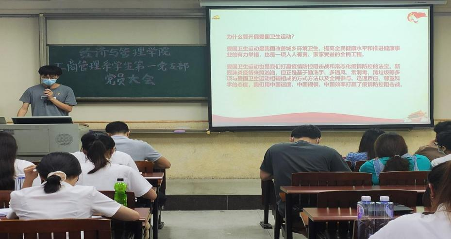 为深入开展爱国卫生运动,倡导文明健康、绿色环保的生活方式,增强防控疫病意识,2022年6月21日下午,经济与管理学院工商管理系学生第一党支部于莞城校区3308教室顺利开展爱国卫生运动的主题党日。经济与管理学院党委副书记黄湘、工商管理系学生第一党支部书记梁建川及支部全体学生党员参与了本次主题党日。