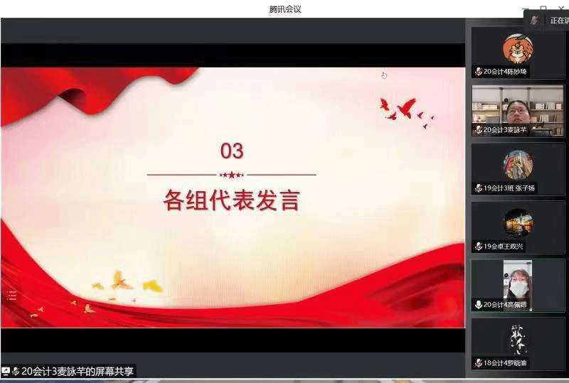 2022年8月23日,工商管理系学生第三党支部于线上会议开展“坚决反腐,廉洁为民”主题党日,支部书记黄雅莉担任主持人。