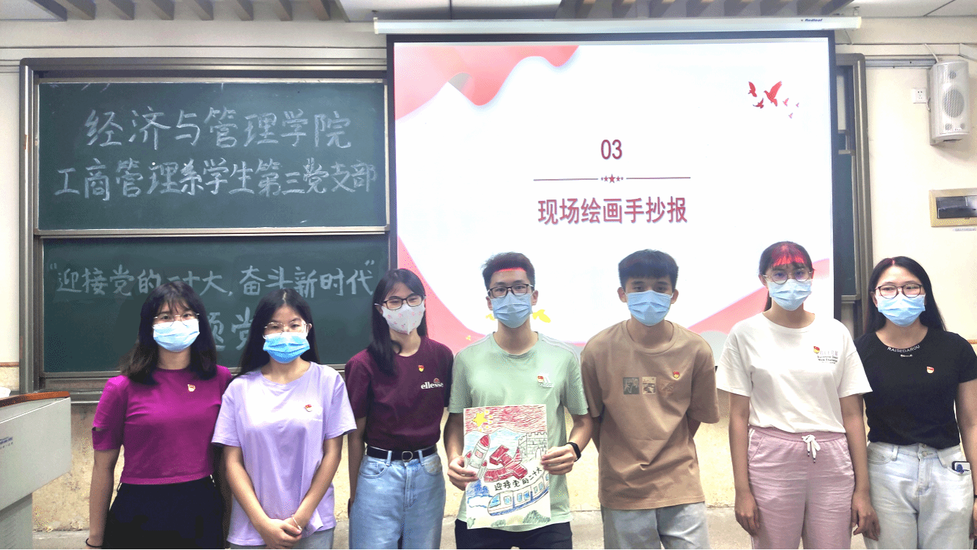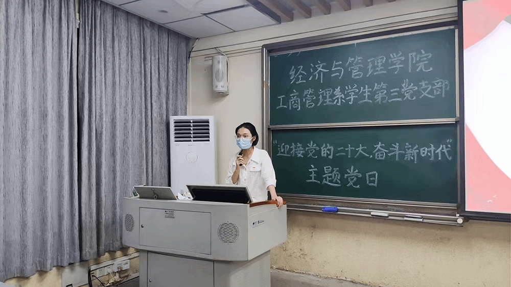 2022年9月22日,经济与管理学院工商管理系学生第三党支部于莞城校区3307举办“迎接党的二十大,奋进新时代”主题党日。本次主题党日由黄雅莉同志主持,全体学生党员出席了现场。