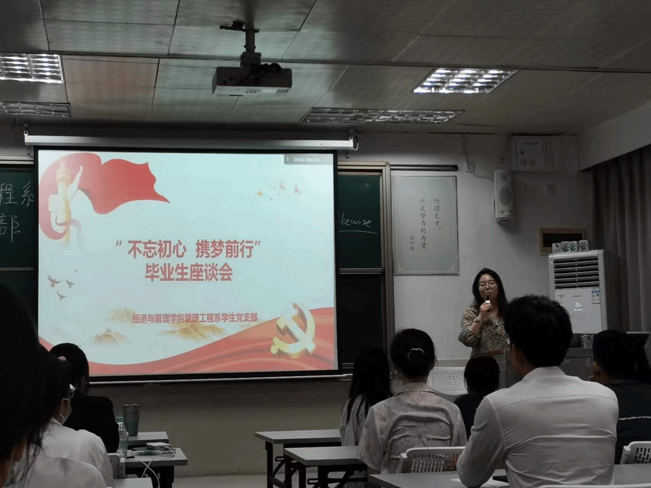 2022年6月22日下午,经济与管理学院管理工程系学生党支部于莞城校区3402教室顺利开展了“不忘初心,携梦前行”主题党日,支部书记杨梅青及全体学生党员参与了此次活动。