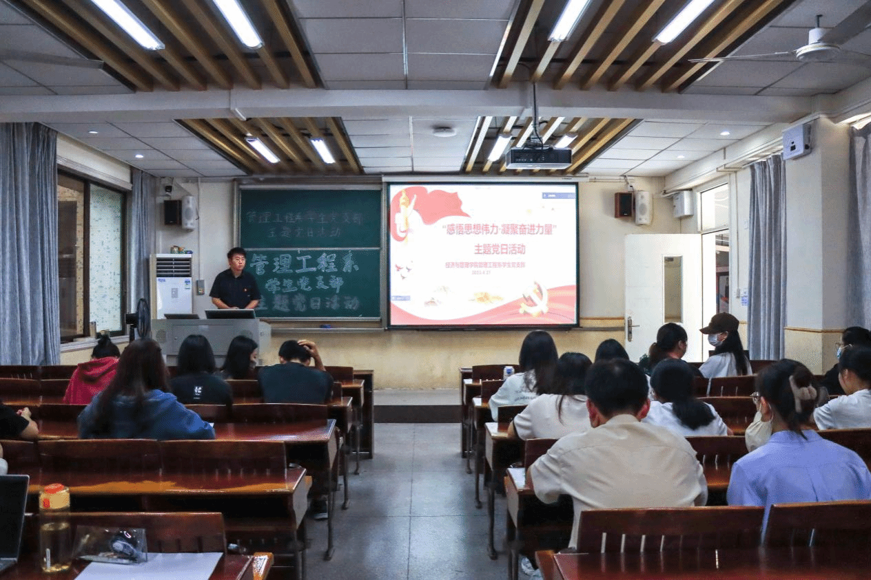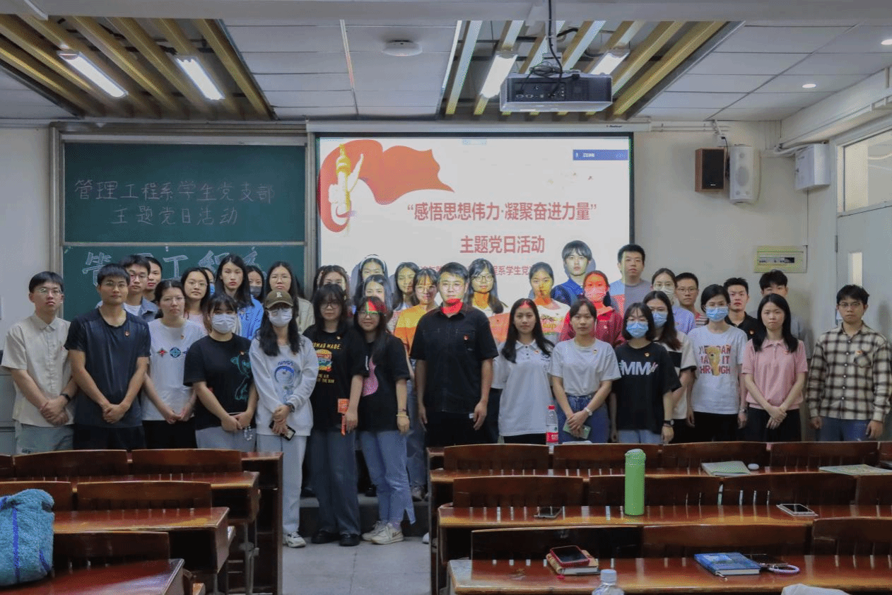 2023年4月27日,管理工程系学生党支部顺利开展“感悟思想伟力,凝聚奋进力量”主题党日。会议由支部书记付中鑫主持,支部全体党员参与学习。