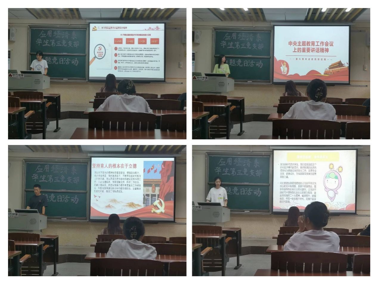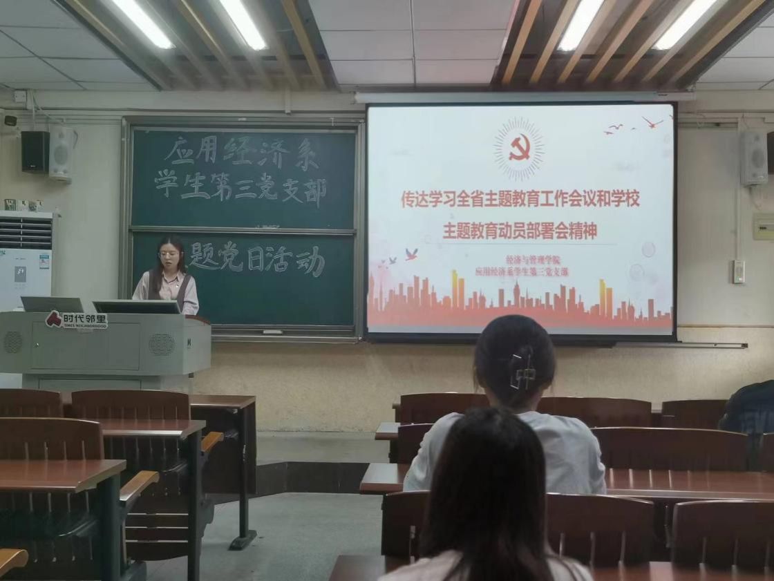2023年4月27日,经济与管理学院应用经济系学生第三党支部于莞城校区3309教室开展主题党日,会议由支部书记叶琦玮主持。