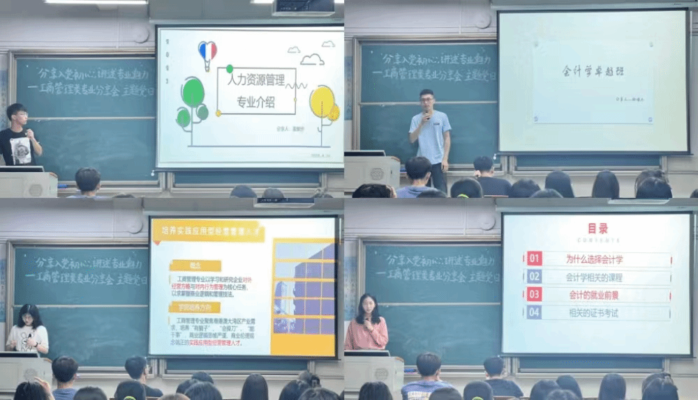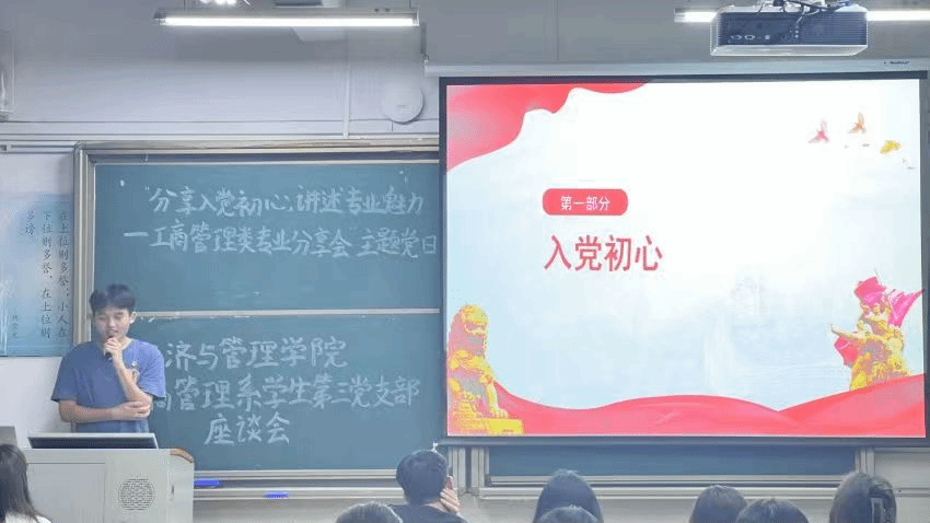 通过举办专业分享会,党员团员交流会等丰富多彩、行之有效的方式,保证入党启蒙教育取得实效。支部高年级优秀党员详细介绍工商管理类各专业的学习方法,为同学们解疑释惑。伦文谷同志表示在未学习工商管理专业之前容易对其产生误解,但经过一段时间深入学习后,同学们的看法会发生改变,因为我们能学到的不仅仅是工商管理专业知识,还包括人力资源、会计学等学科知识。同样,除了考取工商管理的专业证书外,我们还可以考取初会、证从、银从等资格证书,比其他专业学习的知识更广泛,未来的选择也更多。随后,党员代表与在场同学进行热烈的交流互动,进一步促进党员们树立正确的学习态度,明确课程学习目标,掌握有效的学习方法和路径,可以让我们的专业学习之路走得更扎实。