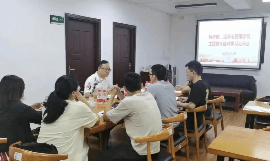 为深入学习贯彻习近平新时代中国特色社会主义思想主题教育,构建结对帮带、双向促进、共同提高的基层党建格局,以主题教育引领学院科研事业高质量发展,6月15日下午,科研部、经济与管理学院于莞城校区4418会议室开展主题教育联学共建交流会。科研部副部长王志平,学院党委书记路晓军、副院长黎伟、教师代表刘学民、金龙、范鹏、张学英、郑重、张艳等同志参加了本次交流会。