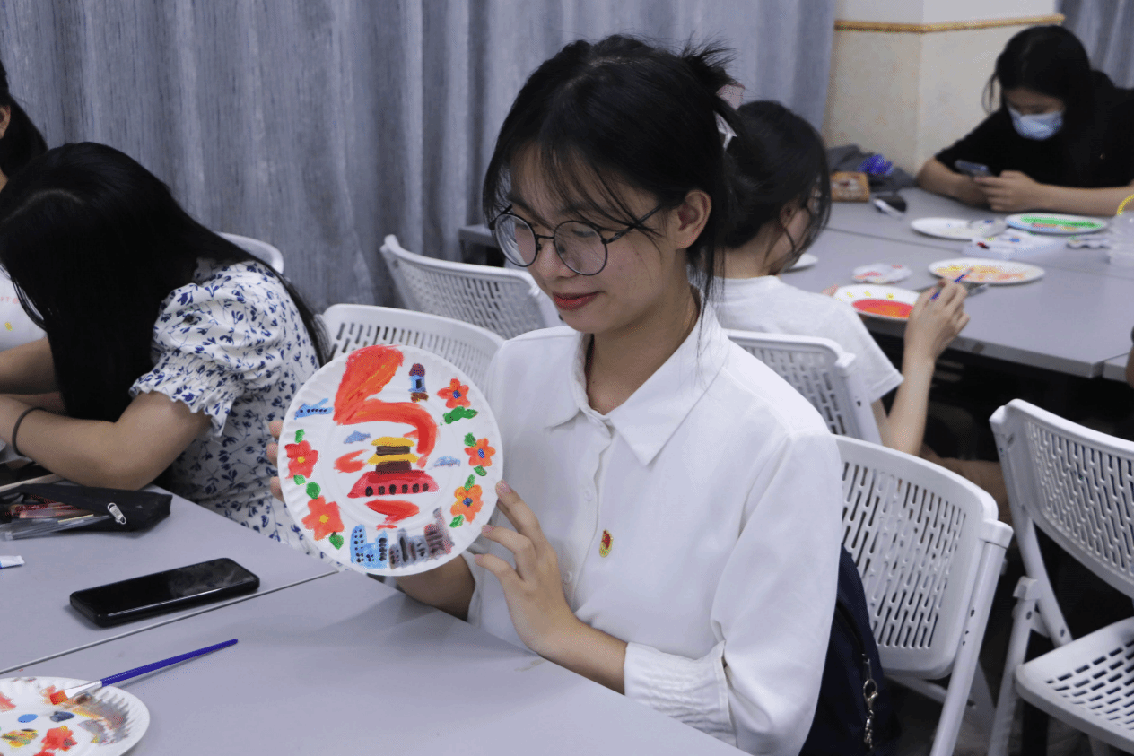 接着,支部开展“绘彩青年模样,展露青年光芒”纸盘绘画活动。党员们用轻薄纸盘绘画出党、国家、青年的相关作品,在纸盘后面书写青年党员的成长感悟,活动结束后一幅幅纸盘作品栩栩如生,展现党员们的别样青春色彩。