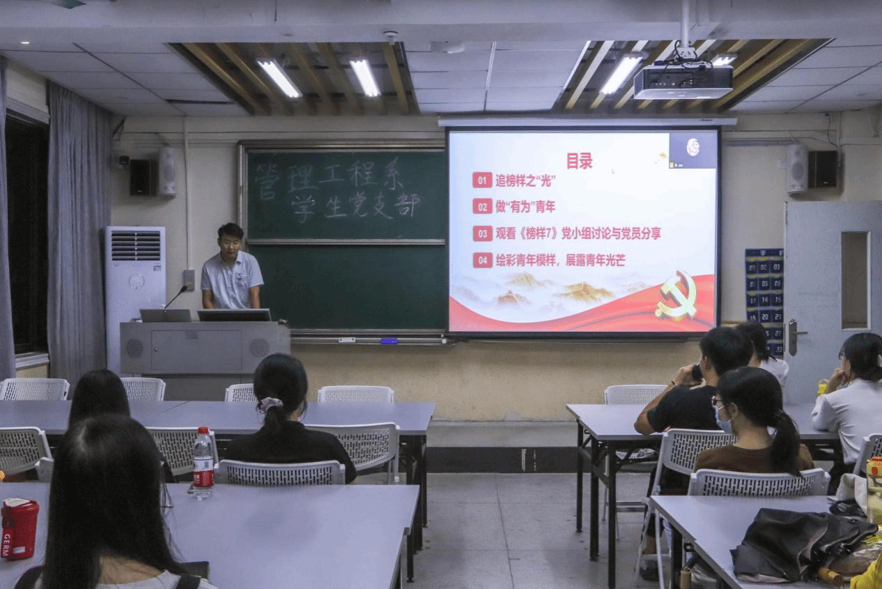 为推动学习贯彻习近平新时代中国特色社会主义思想主题教育走深走实,引导党员筑牢思想根基,自觉加强党性修养,磨练意志品质,争做青年榜样,6月14日晚,经济与管理学院管理工程系学生党支部于莞城校区3302教室开展“青年榜样”主题党日。本次党日活动由支部书记付中鑫主持,支部全体党员出席现场。
