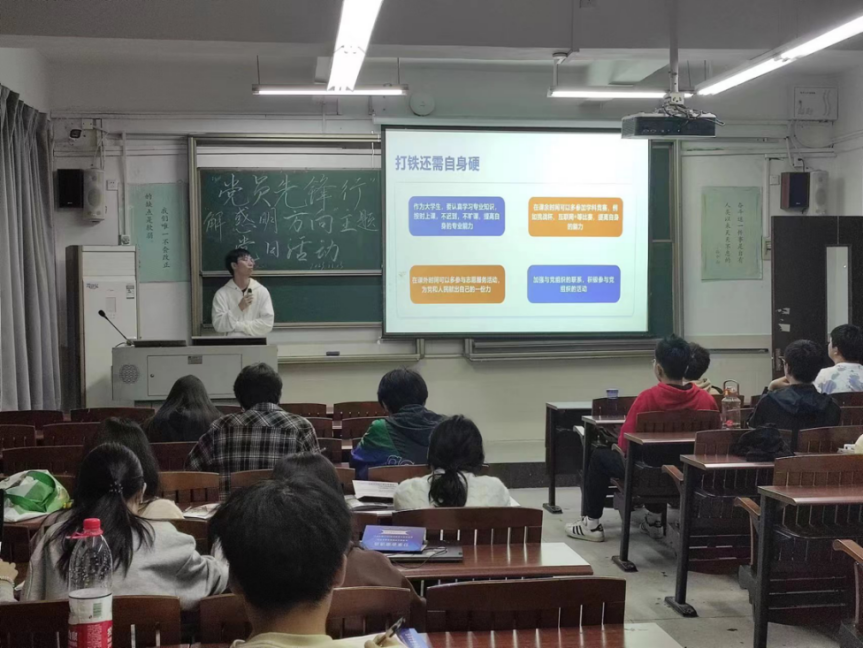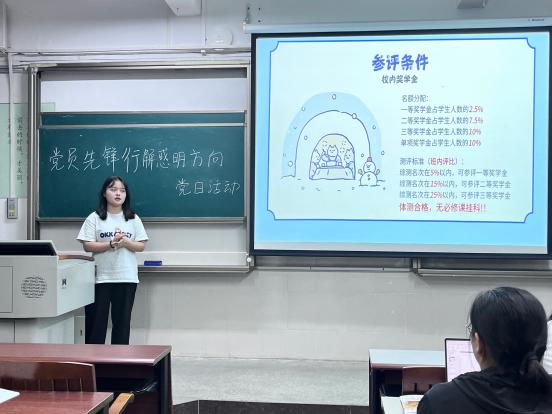 此次活动以支部党员分享交流的形式进行。党员分享内容分别为党员发展流程介绍、大学学习规划、奖学金评选三个方向。这次分享不仅有助于引导学生积极向党组织靠拢,还可以为新生对提供大学规划的有益建议