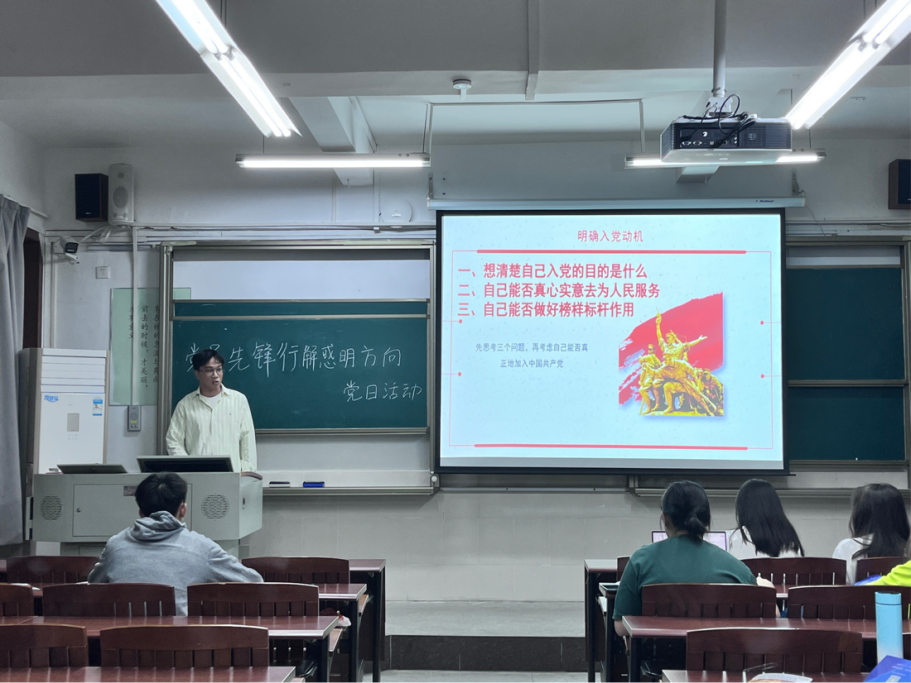 叶树铭同志通过讲述自己的入党故事,引导同学们端正入党动机,坚定加入中国共产党的决心。谭锦辉同志通过分享他的入党经历,向同学们讲述了入党的各个流程,从“端正入党动机”、“坚定理想信念”、“加强理论学习”、“提高综合素质”四方面讲述如何以实际行动争取早日入党。