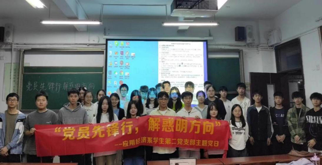 为了让2023级新生顺利度过大学适应期,营造一个良好的生活学习环境,体现学生党员的先锋模范作用,同时为了有效加强学生党员和新生的联系,了解学生的思想状况,帮助学生解决实际问题,2023年10月13日,应用经济系学生第二党支部开展了一场以“党员先锋行,解惑明方向”为主题主题党日。