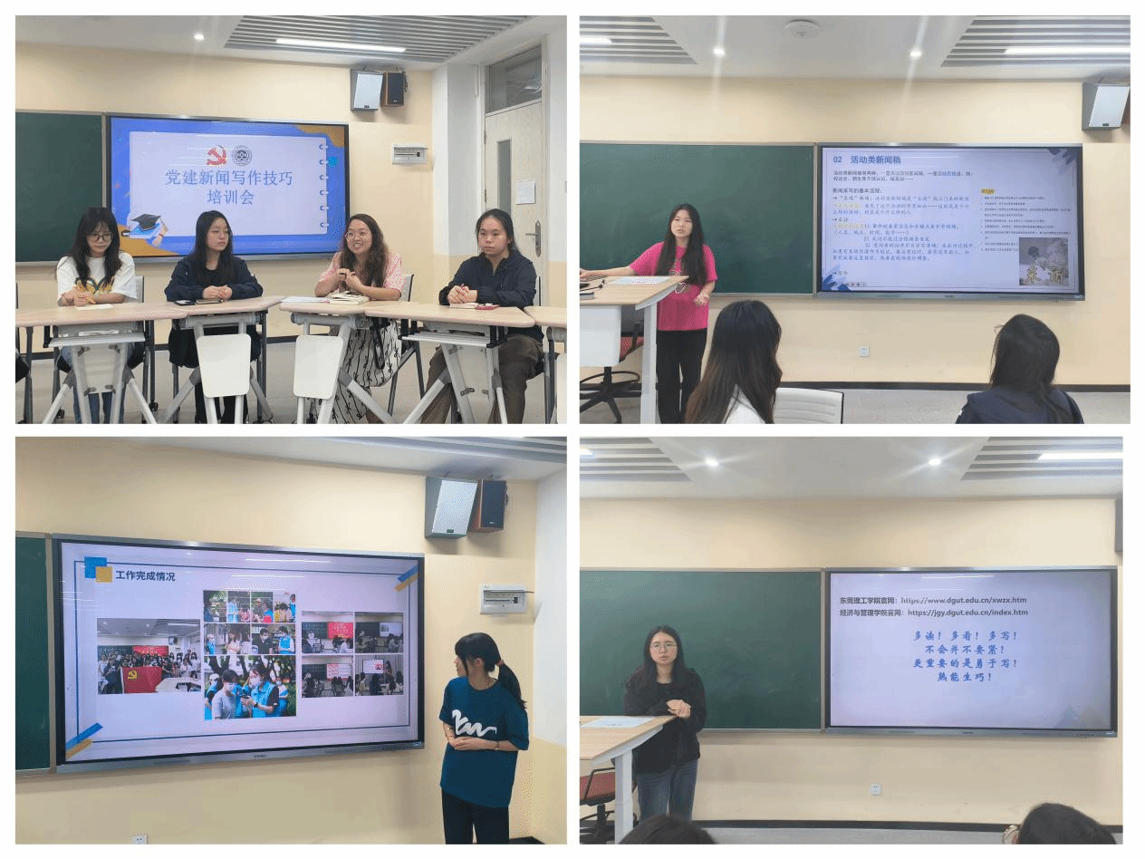 会上,胡嘉琪老师强调新闻宣传通讯员要锻炼自己对新闻的敏感度,从“大学生”到“莞工人”再到“经管人”,时刻从圈层角度发现共鸣、开拓创新。
