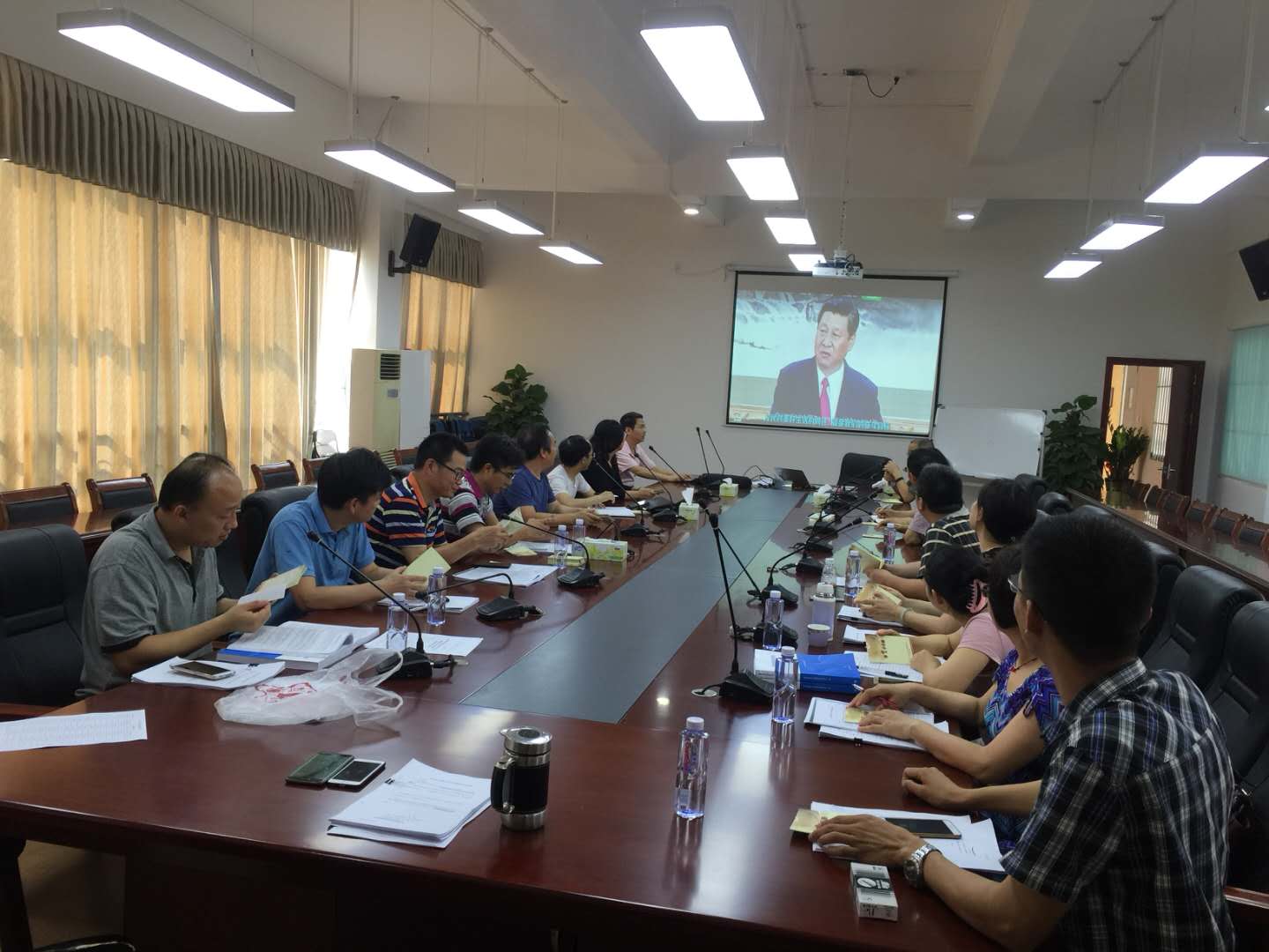5月24日,经济与管理学院教工党支部组织教工党员分别于松山湖校区经管楼308会议室、莞城校区3307会议室,同时观看习近平治国方略纪录片。