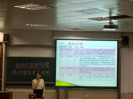 2017年6月10日下午,经济与管理学院于莞城校区6#1课室举行主题为“回顾党史,坚定信念”的全体学生党员培训课,辅导员段宁担任主讲嘉宾,yl88858永利集团全体学生党员、滞留毕业生党员出席了现场。