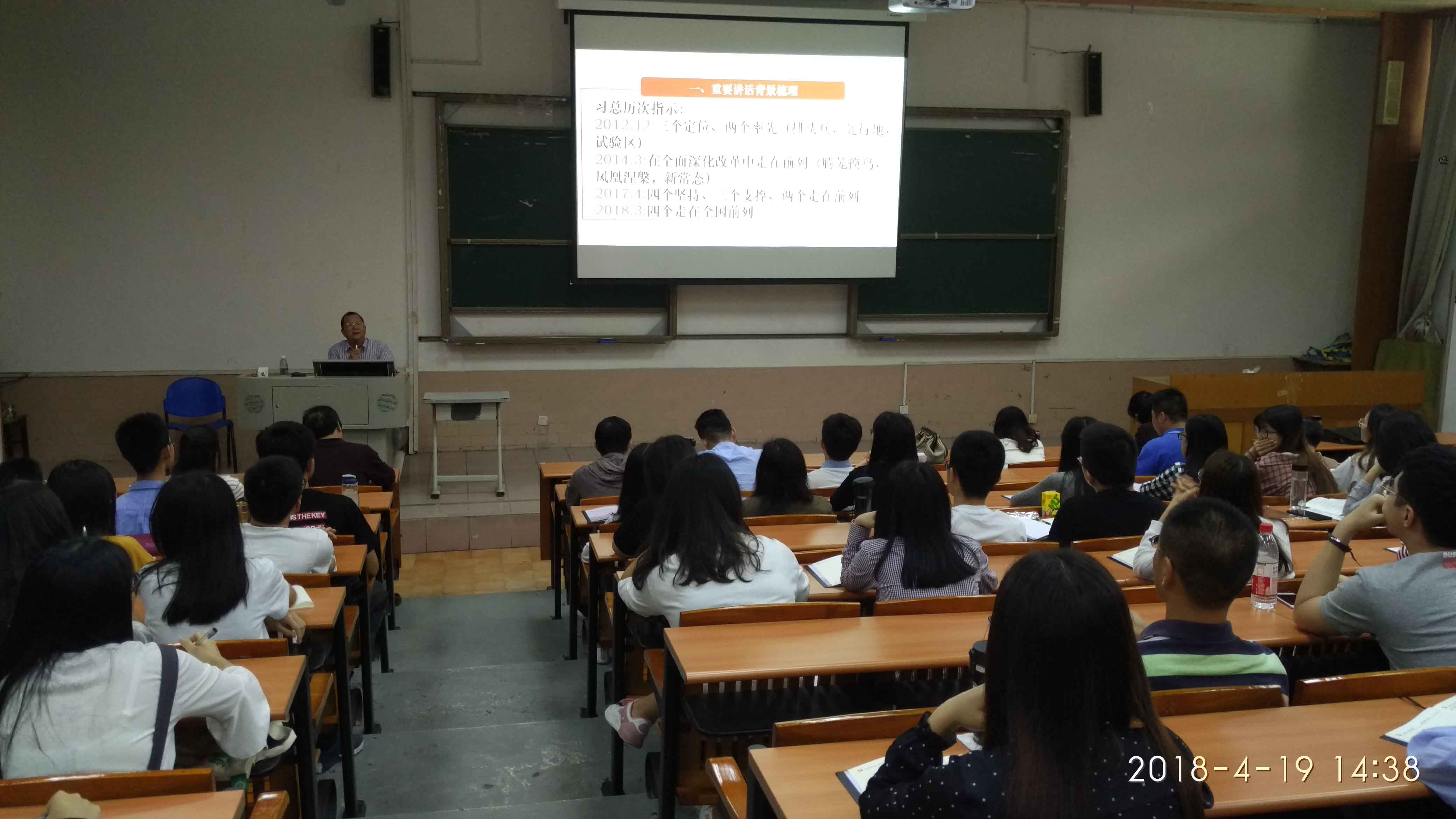 4月19日下午,经济与管理学院党总支召开了“习近平总书记在参加十三届全国人大一次会议广东代表团审议时的重要讲话精神”专题学习会。本次专题学习会邀请了马克思学院形势与政策教研室主任肖凤良担任主讲人。学院全体教职工、学生党员、第四期入党积极分子参加了学习会。