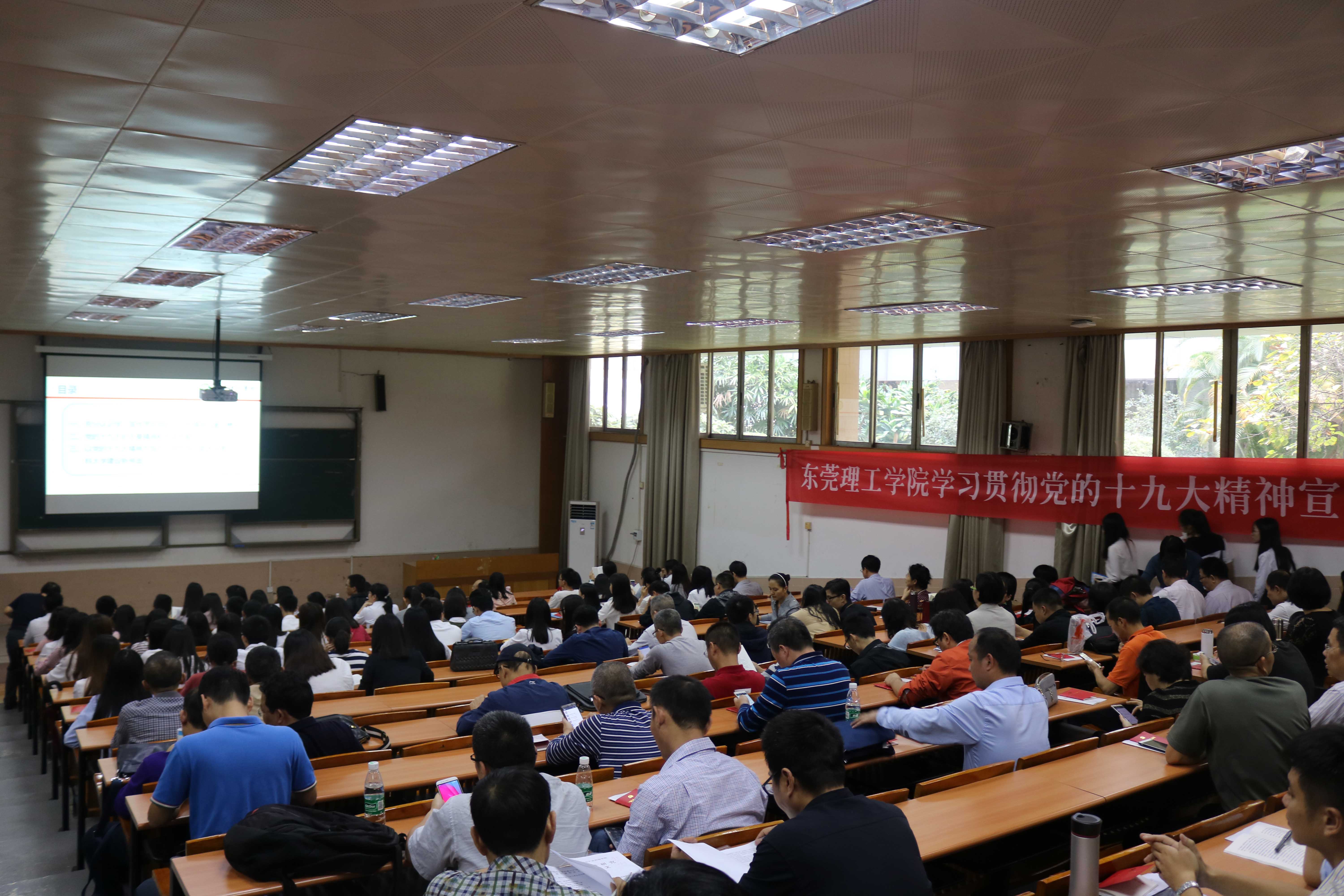 为深入学习贯彻党的十九大精神,努力开创高水平理工科大学建设新局面,11月16日下午,经济与管理学院于莞城校区5#1阶梯教室召开学习贯彻党的十九大精神宣讲会,由博士郭奕鹏担任主讲人。