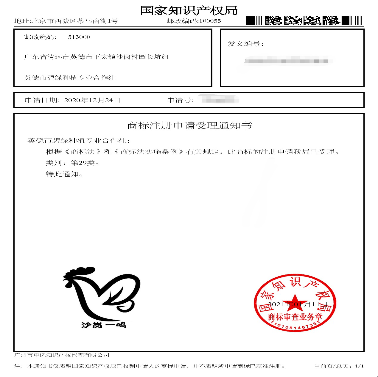 科技特派员团队依托中国国家地理标志产品——“清远麻鸡”,协助对接贫困村种植专业合作社推进“清远麻鸡”的品牌化建设,并向国家知识产权局提交商标的注册申请,农产品品牌化建设迈向重要的一步。具备自有品牌商标后,对进一步拓宽网络营销和销售渠道,农民增收致富,打造地方知名农产品品牌,增加优质农产品供给,推进乡村振兴战略具有重要的意义。