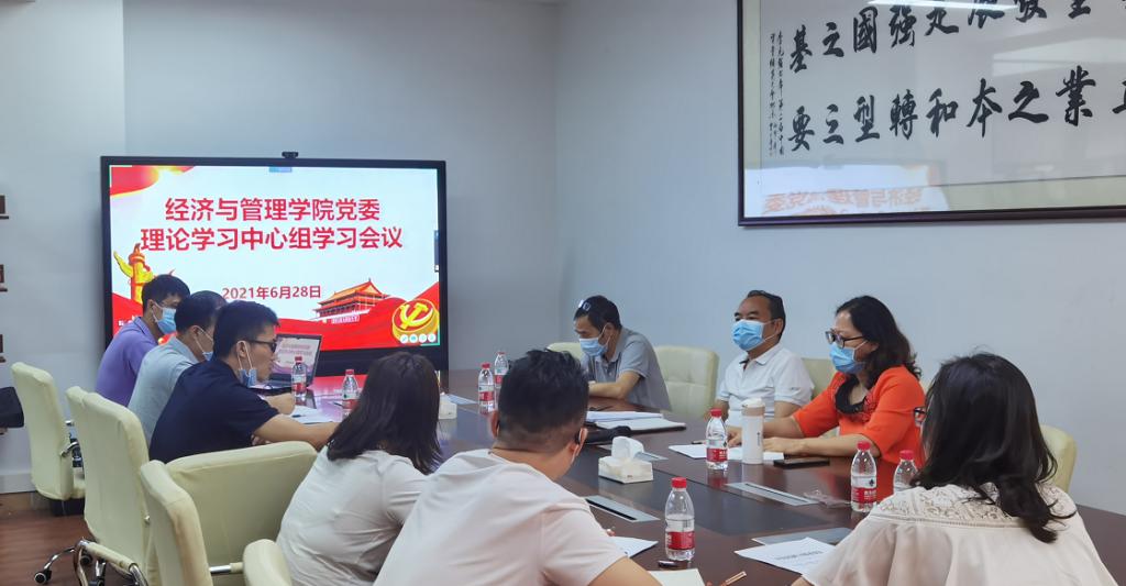 2021年6月28日下午,经济与管理学院党委理论学习中心组于莞城校区4420会议室召开专题学习会,学习习近平总书记《用好红色资源,传承好红色基因,把红色江山世世代代传下去》重要文章。经济与管理学院党委书记杨继学,院长刘继云,副院长刘川、黎伟,副书记黄湘等成员参与了学习。