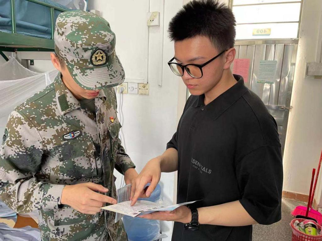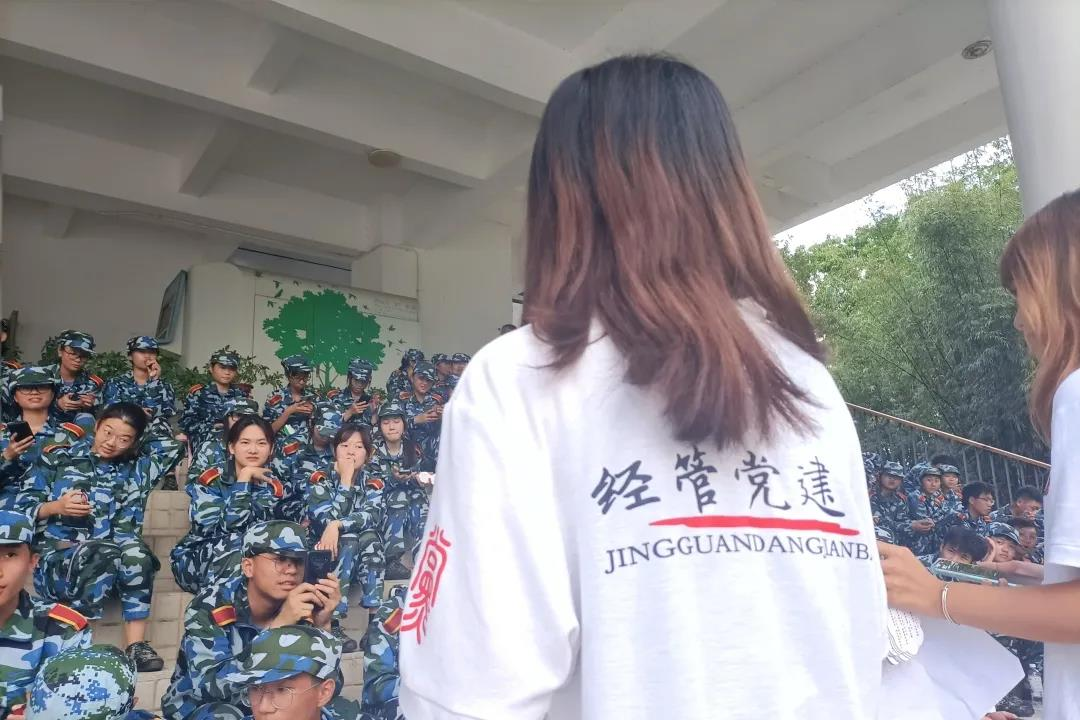 新生军训期间,学生党员为正在短暂休息的军训新生们送水解暑,宣讲党的知识,同时鼓励同学通过军训磨练意志,将军训中学习到的意志品质融入到今后的学习中去,积极向党组织靠拢。