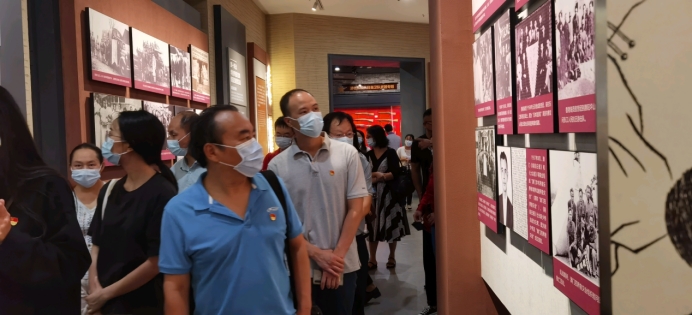 师生党员们认真聆听解说员的讲解,结合展厅内极具纪念意义的文物、图片和文字介绍,学习了抗日战争时期中国共产党领导的广东人民抗日游击队东江纵队,为了民族的解放事业浴血奋战、夺取胜利的光辉历程。