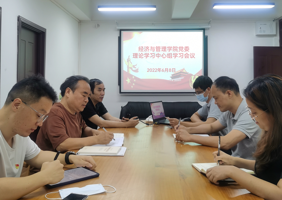 6月8日下午,经济与管理学院党委理论学习中心组于莞城校区4418会议室召开专题学习会,学习贯彻《关于加强新时代廉洁文化建设的意见》,经济与管理学院党委书记杨继学主持会议,院长刘继云,副院长刘川,副书记黄湘等成员参与了学习。