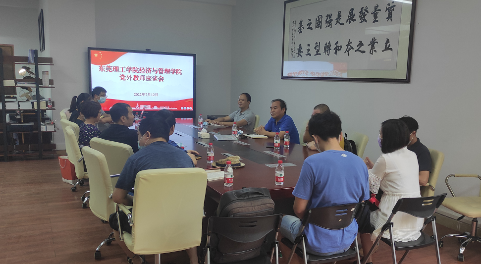 为深入贯彻落实中共中央关于加强新时代党外知识分子思想政治工作和无党派代表人士队伍建设的有关文件精神,着力营造凝心聚力的良好氛围,7月12日,经管学院于莞城校区4420会议室召开2022年党外教师代表座谈会,就学院改革发展、党外教师成长等进行了深入交流。学院党委书记杨继学主持会议,学院党委副书记黄湘、9名党外教师代表参加了会议。