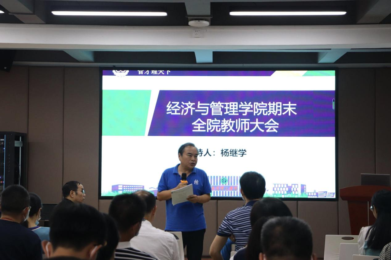 7月12日上午,经济与管理学院2021-2022学年第二学期末全院教师大会顺利召开,会议由学院党委书记杨继学主持,学院领导和全体教师出席了现场。